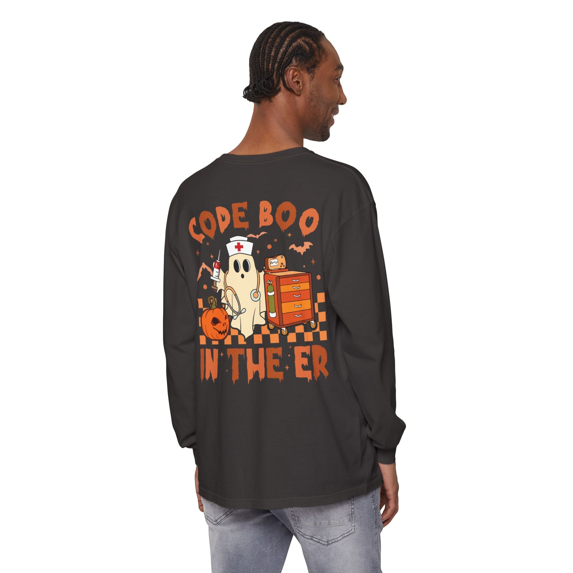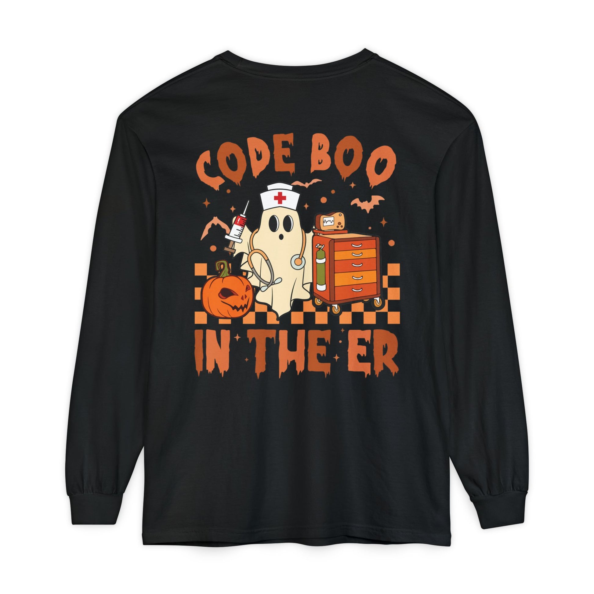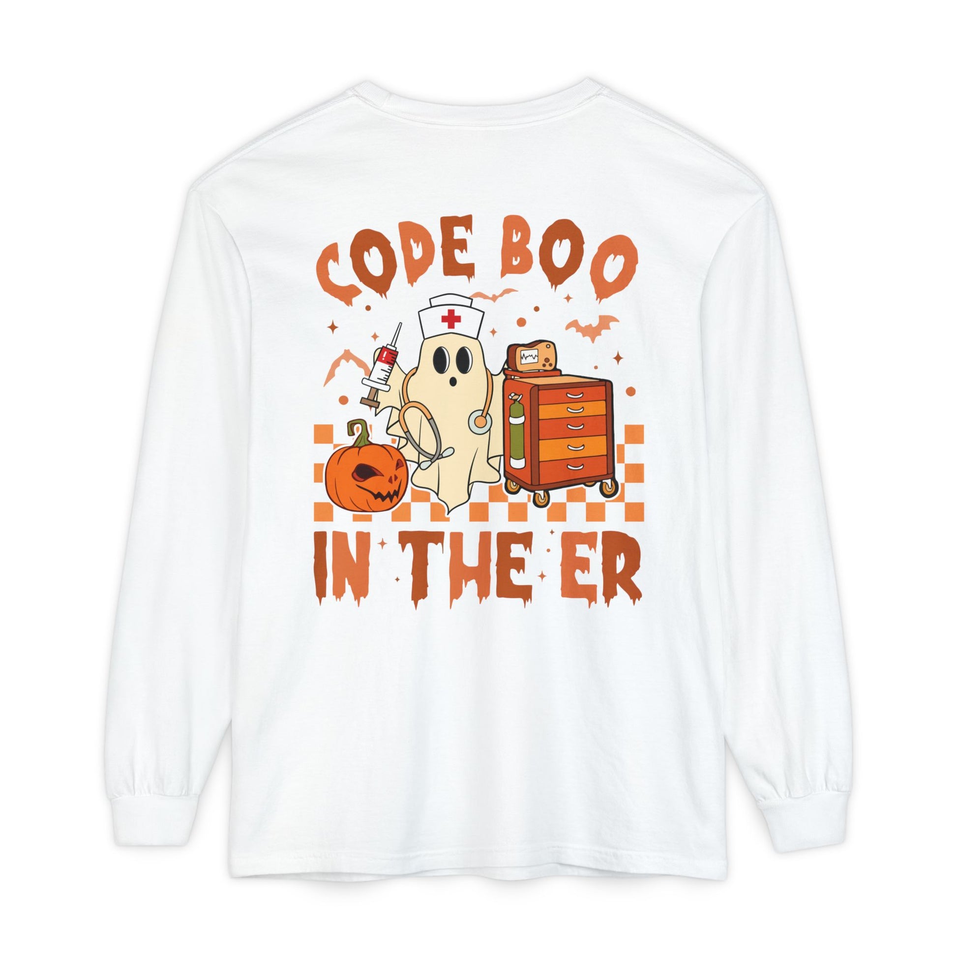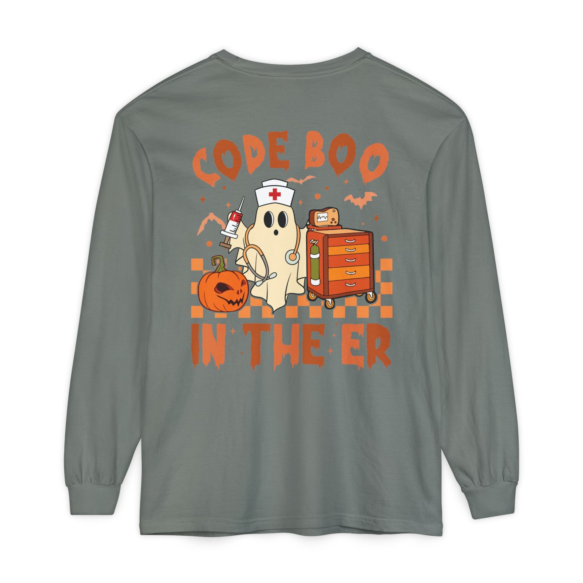 Code Boo in the ER, pediatric nurse Halloween shirt,, Comfort colors ghost nurse shirt, Peds nurse , Spooky nurse shirt
